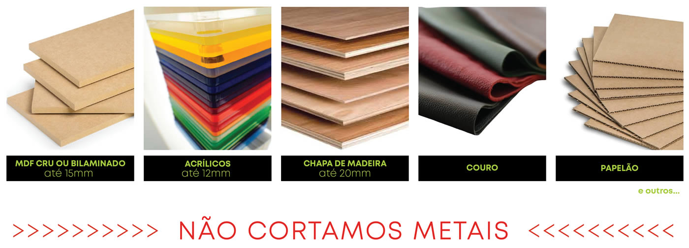 Corte a laser de alta precisão, ideal para materiais como MDF, acrílico, couro, papel e muito mais;